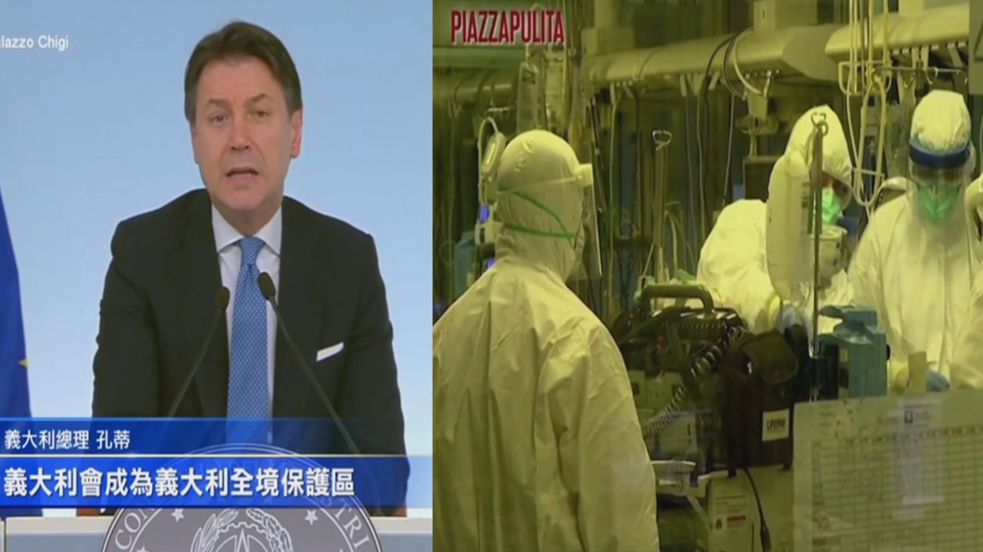 義大利總理 孔蒂:「 義大利會成為義大利全境保護區,在半島上,大家會被限制行動;如要移動必須要有三種情況,被證明的工作理由、緊急情況,和健康理由。」