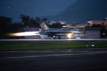 空軍花蓮基地8架F-16戰機,清晨5時30分依序升空,發動機聲響劃破東部的寧靜清晨;同時,拂曉出擊戰機的橘紅色尾焰,在黑暗中格外明亮,傳遞出中華民國空軍健兒捍衛領空、確保國土主權的堅定決心。