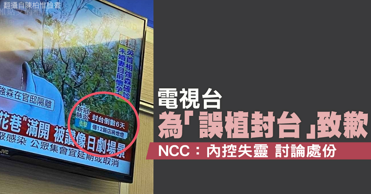 電視台為「誤植封台」致歉 NCC:內控失靈 討論處份