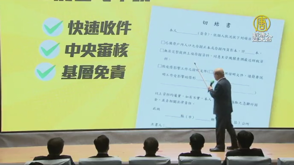 【新唐人亞太台 2020 年 05 月 07 日訊】新聞先帶您看到,「萬元紓困補助方案」引發民怨,衛福部規劃急難紓困方案,開放沒有投保的工作者申請補助,不過因為政策倉促實施,讓基層承辦人員困擾,也被民眾批評申請困難。蘇貞昌今天為此,2度鞠躬道歉要「負完全責任」,並宣布簡化申請程序。