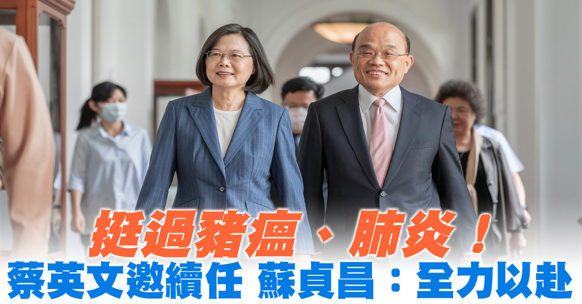 挺過豬瘟、肺炎!蔡英文邀續任 蘇貞昌:全力以赴