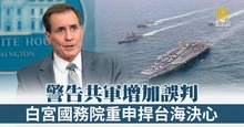警告共軍增加誤判 白宮國務院重申捍台海決心