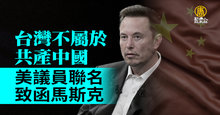 美議員聯名致函馬斯克 台灣不屬於共產中國