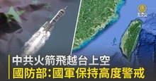 中共火箭飛越台上空 國防部:國軍保持高度警戒