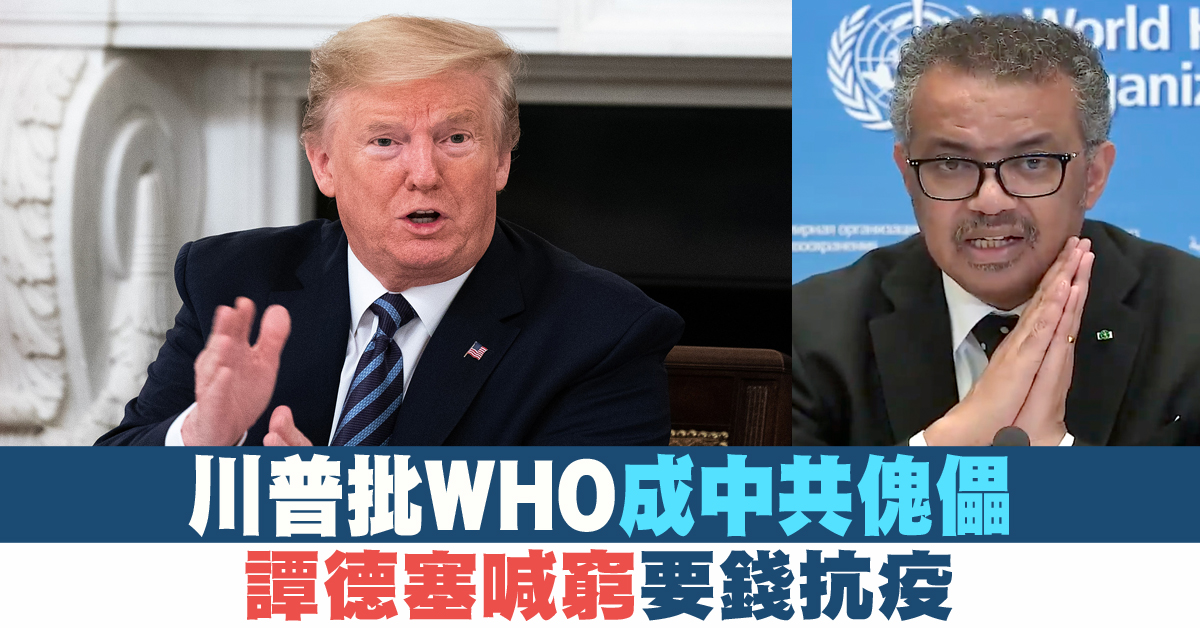 川普批WHO成中共傀儡 譚德塞喊窮要錢抗疫