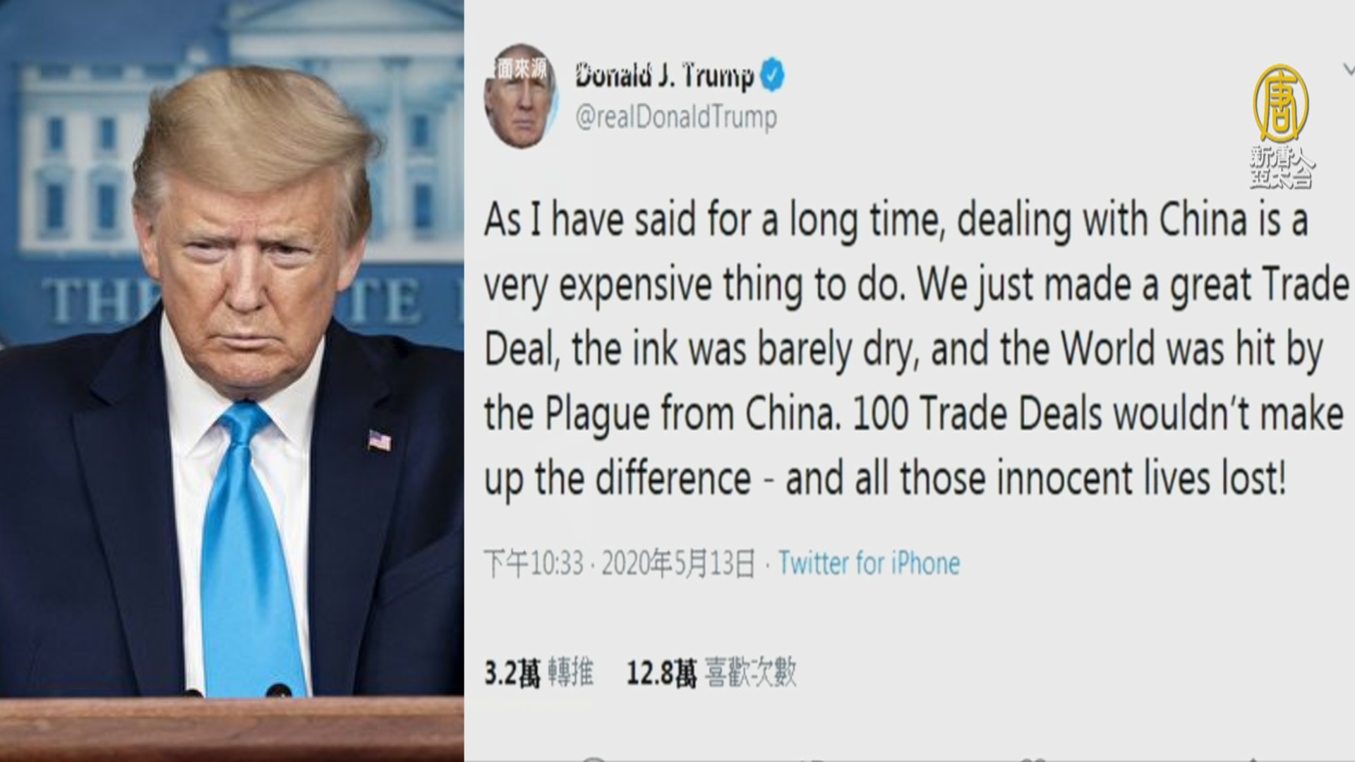 【新唐人亞太台 2020 年 05 月 14 日訊】美國確診中共肺炎人數超過137萬,死亡人數超過8萬,美國總統川普週三早上推文說,即使100份美中貿易協議,也換不回所有消逝的無辜生命。