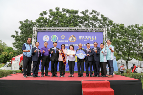 國際獅子會300-D1區第42屆年會植樹活動暨公共藝術品落成捐贈典禮在北香湖公園熱鬧展開。(嘉義市政府提供)