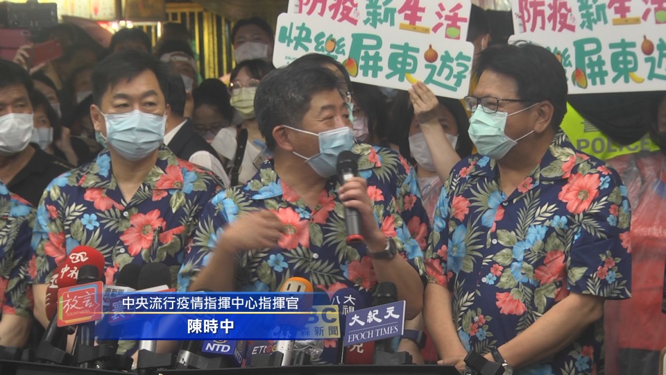 記者 李晶晶:「台灣疫情趨緩,中央流行疫情指揮中心指揮官陳時中,率領防疫團隊,示範防疫新生活,第一站來到墾丁大街。」