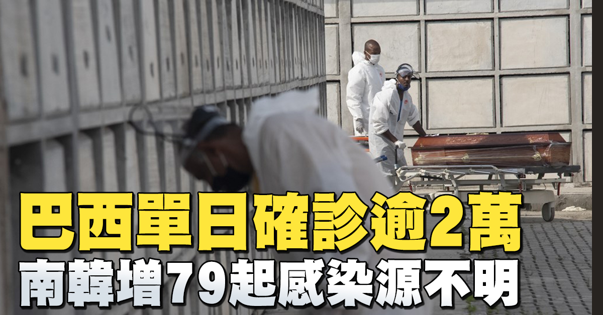 巴西單日確診逾2萬 南韓增79起感染源不明