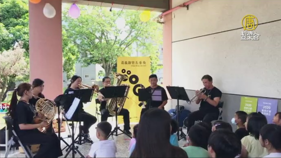 【新唐人亞太台 2020 年 06 月 19 日訊】「嘉義銅管五重奏」校園巡迴公益演出,即將在嘉義縣12所小學登場,19日在大崙國小舉行啟動記者會,這所學校緊鄰埤塘,現場不只有音樂演奏,校方和縣長還划起了獨木舟來慶祝。