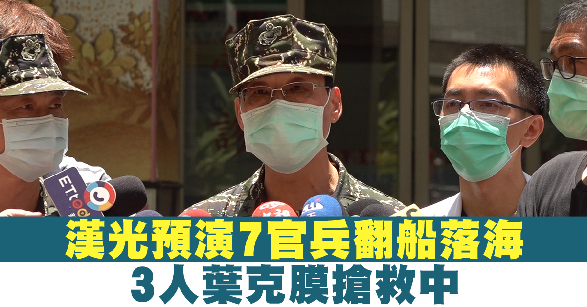海軍陸戰隊政戰主任 林傳盛:「早上執行聯合登陸作戰操演預演時,因海象突然變化,造成膠舟翻覆,目前有3員官兵正在左營醫院急救中。」