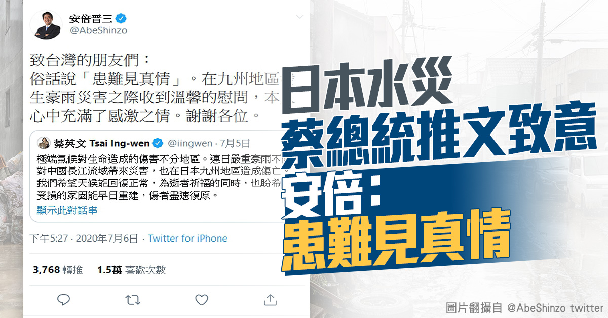 日本水災蔡總統推文致意 安倍:患難見真情|台灣速速看