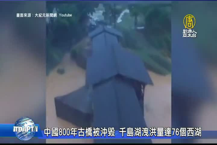 中國800年古橋被沖毀 千島湖洩洪量達76個西湖