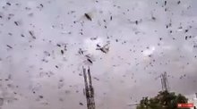 漫天遍野黑壓壓一片,整片天空被密密麻麻的蝗蟲占領,空氣中充斥著蝗蟲揮動翅膀的聲音,數量之多27年來罕見;地居民表示:「天空中有數十億甚至數萬億的蝗蟲在飛,這是我一生中從未見過的景象!」