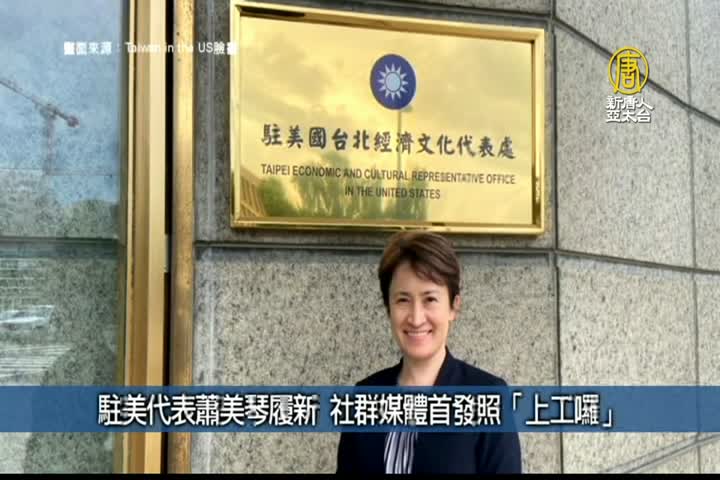 台灣首位女性駐美代表蕭美琴已經抵達美國華府履新。駐美代表處在官方臉書、推特放上蕭美琴與代表處門牌合影照片,並留言強調「上工囉!」代表處已經準備好了,挑戰越大、機會越大,蕭美琴與代表著人員將持續努力,確保台美關係發展。