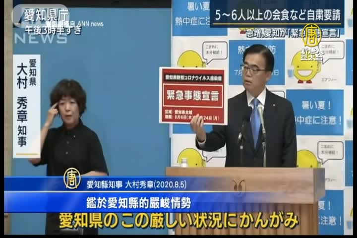 愛知縣知事 大村秀章(2020.8.5):「鑑於愛知縣的嚴峻情勢,針對新型冠狀病毒感染,愛知縣自行發布緊急事態宣言。」
