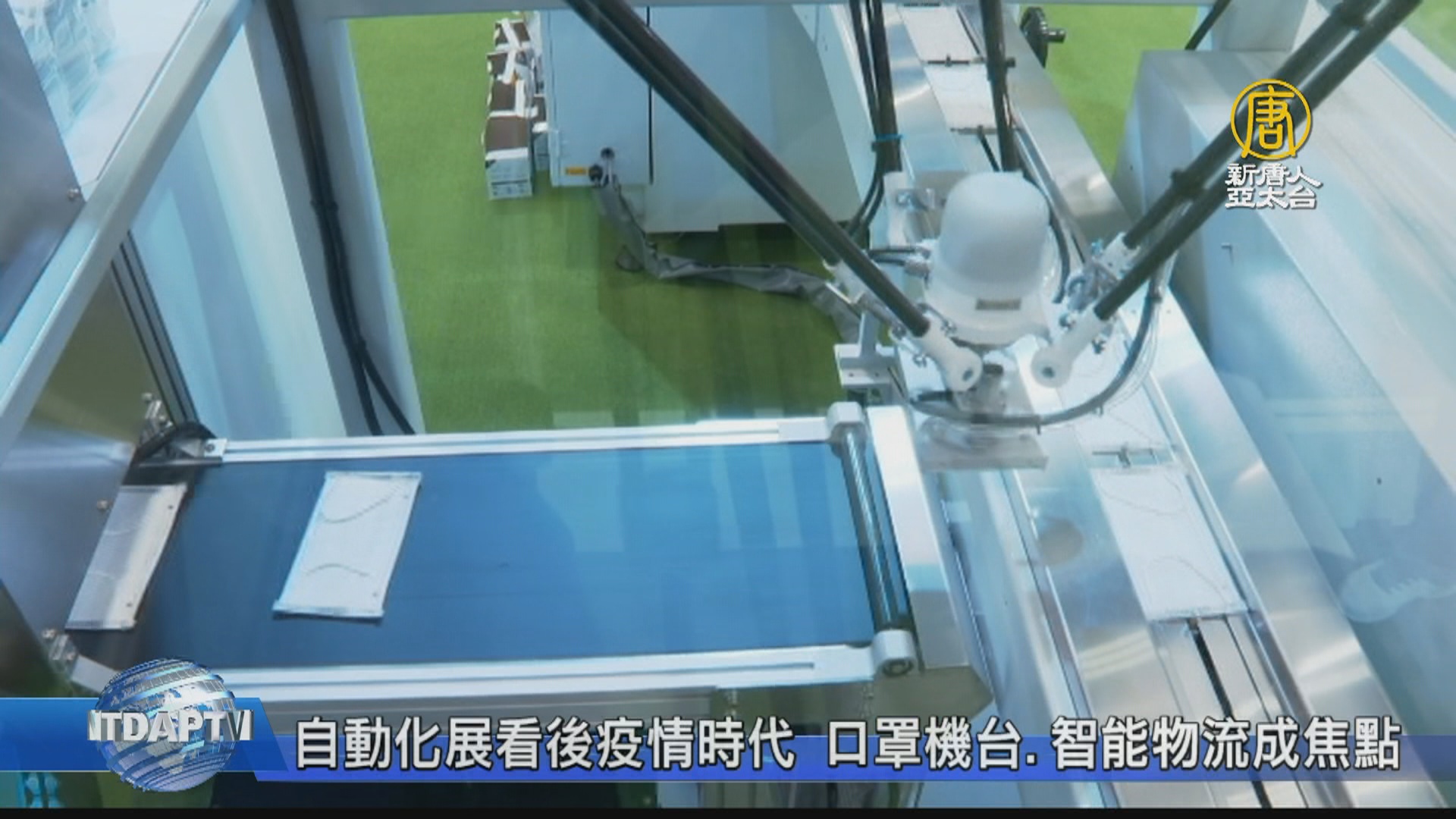 【新唐人亞太台 2020 年 08 月 19 日訊】疫情蔓延全球,衝擊產業,也加速產業自動化的趨勢。像是聞名全球的台灣口罩國家隊,成員之一的上銀科技,就把口罩自動檢料系統,搬到展場。此外受關注的發展,例如智能物流中心、遠距雲端服務等等,從後疫情時代的新應用,看見台廠的研發實力。