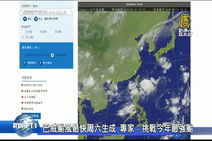 【新唐人亞太台 2020 年 08 月 21 日訊】再來看到,週末可能又有颱風了,目前位於菲律賓東邊的熱帶擾動,逐漸發展中,中央大氣系兼任副教授吳德榮表示,最快今天就有機會生成為熱帶性低氣壓,評估明天到後天是颱風生成關鍵期,升格為今年第8號颱風「巴威」,也有機會成為今年最強颱。氣象局表示,熱帶擾動最快在22日晚間變成颱風,形成颱風後可能同步發布海上颱風警報,陸上颱風警報則可能隨後發布。