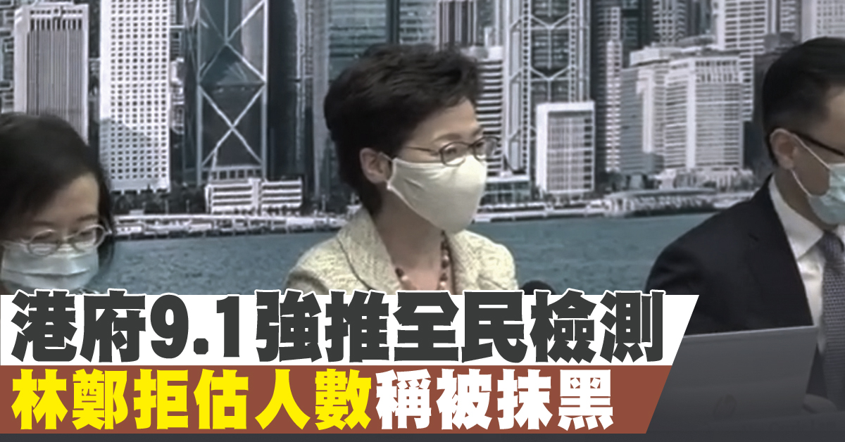 港府9.1強推全民檢測 林鄭拒估人數稱被抹黑