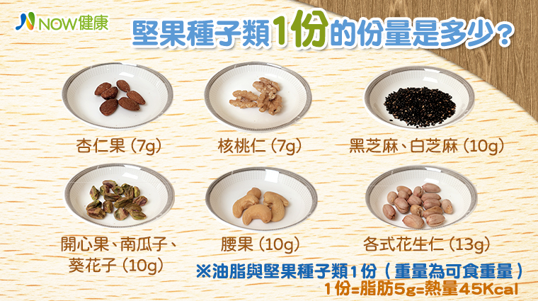 ▲堅果種子類1份份量有多少?高劭穎建議每日搭配均衡飲食及攝取1份堅果食物。(資料來源/台北市立聯合醫院忠孝院區;圖/NOW健康製作)