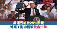 美週五加徵25%關稅 外媒:對中經濟致命一擊