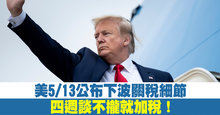美5月13日公布新關稅細節 四週談不攏就加稅!