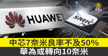 中芯7奈米良率不及50% 華為或轉向10奈米