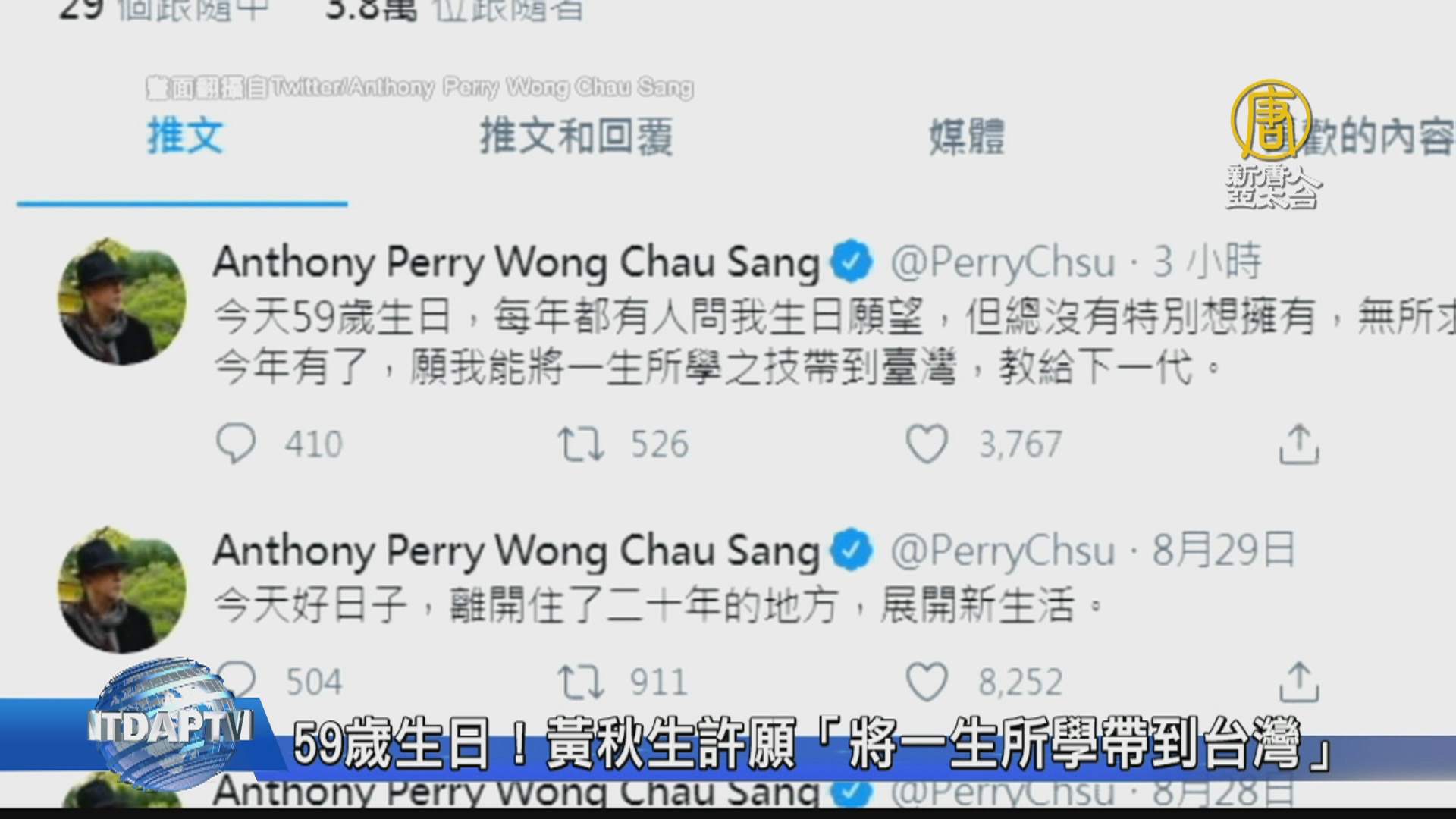 【新唐人亞太台 2020 年 09 月 02 日訊】曾透露想移民台灣的香港影帝黃秋生,日前來台灣拍戲後已經返回香港。8月29日,黃秋生就曾在推特表示:「今天好日子,離開住了二十年的地方,展開新生活。」雖然根據媒體報導,只是「暫時搬家」,不過就在今天(2日是他59歲生日時,他再次發文許願,「希望能將一生所學之技帶到臺灣,教給下一代。」,讓不少人認為,他似乎已做好移民來台準備。