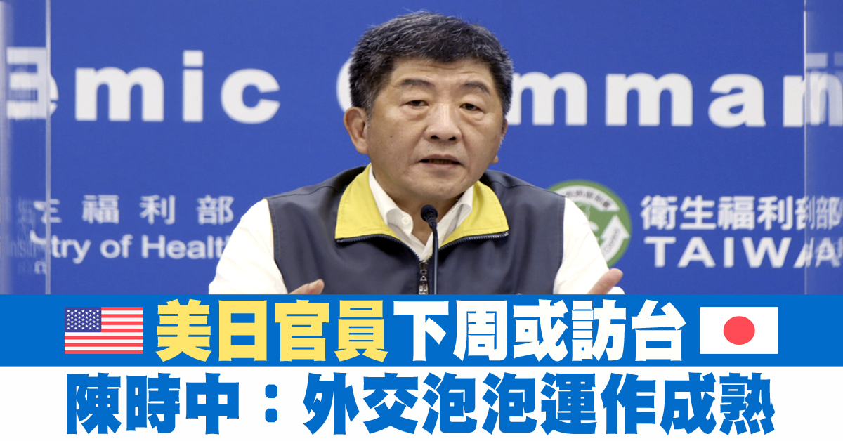 美日官員下周或訪台 陳時中:外交泡泡運作成熟