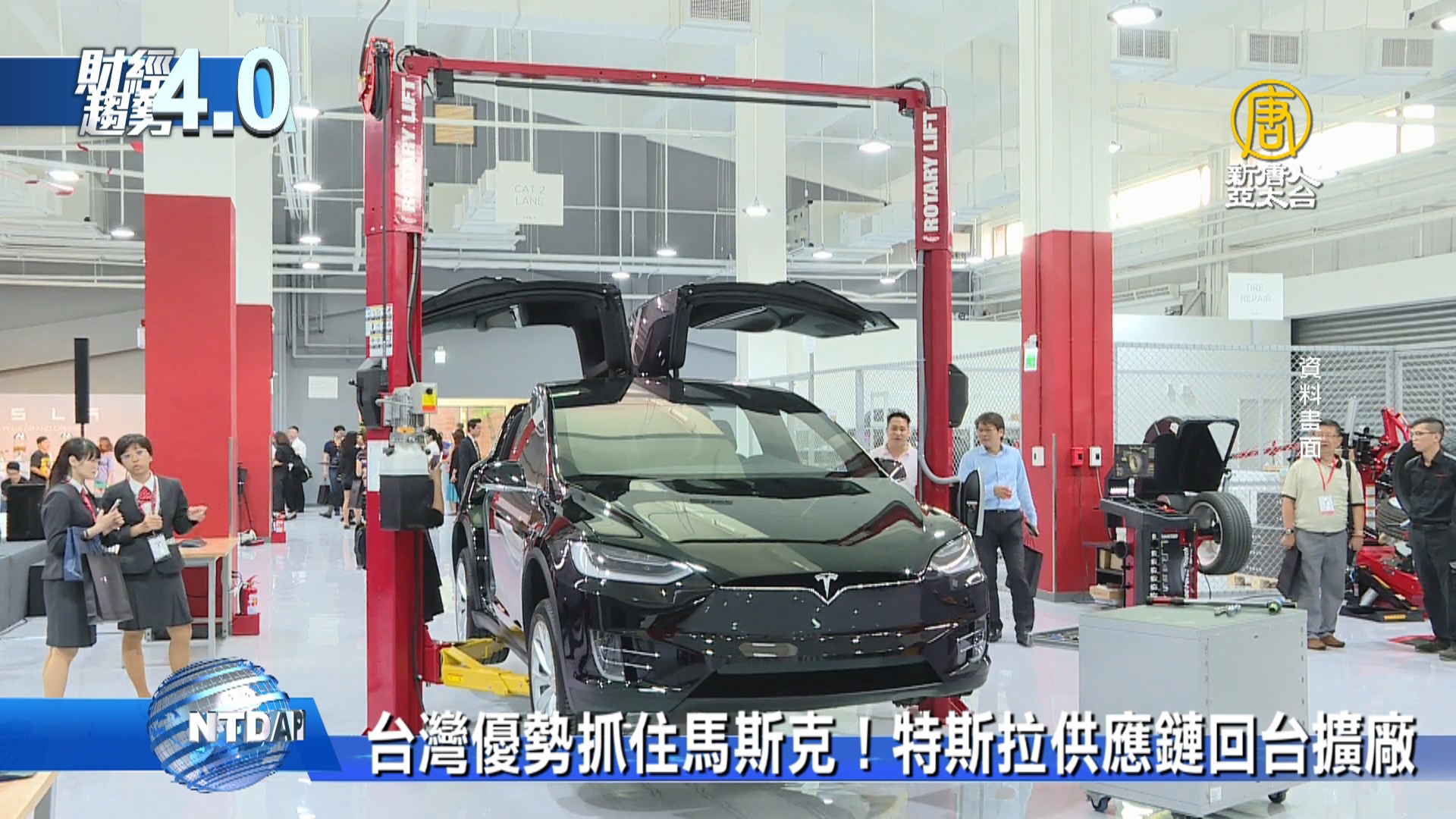 【新唐人亞太台 2020 年 09 月 12 日訊】媒體報導,全球電動車大廠特斯拉,有75%供應商都來自台灣,隨著電動車市場起飛,也掀起供應鏈擴廠潮,經濟部長王美花透露,特斯拉供應鏈等企業,正加碼投資台灣,搶地擴廠。