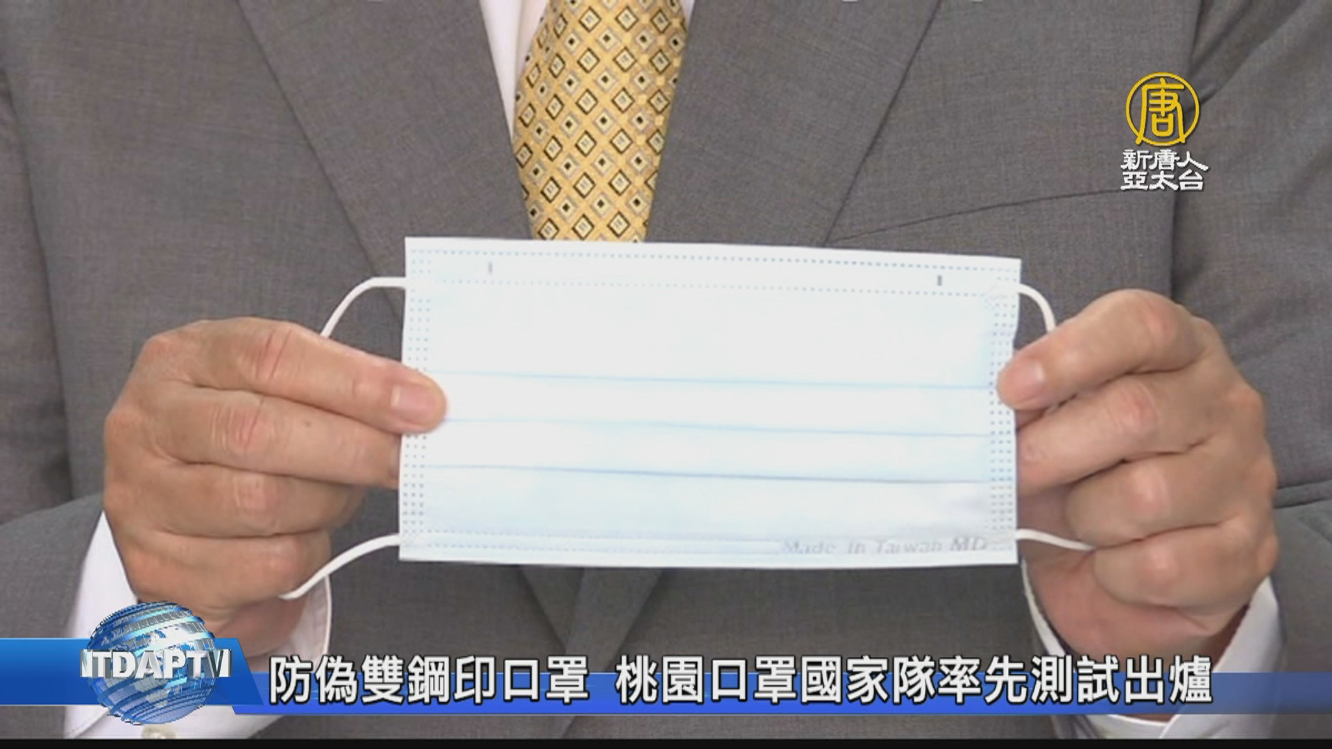 【新唐人亞太台 2020 年 09 月 14 日訊】全台第1家防偽雙鋼印口罩樣式,今天率先測試出爐。12日桃園口罩國家隊善存科技,率先分配到4套可蓋雙鋼印的成人口罩模具,隨即展開測試,為全台第1家進行雙鋼印口罩測試的口罩國家隊。