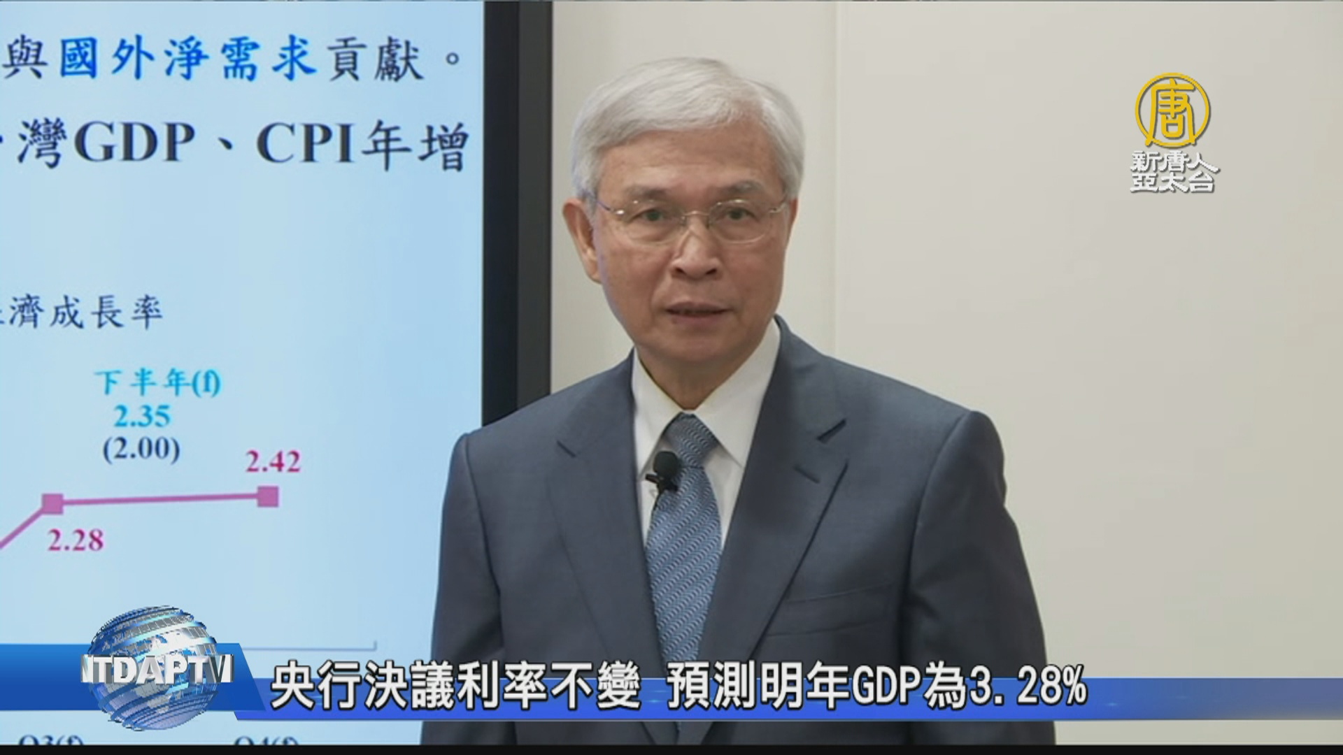 央行決議利率不變 預測明年GDP為3.28%