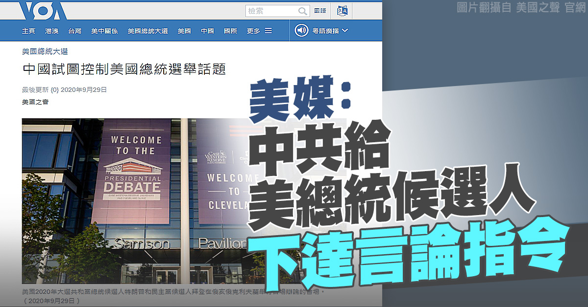 【新唐人亞太台 2020 年 09 月 30 日訊】美國總統大選共和黨候選人川普和民主黨候選人拜登,今早就要進行首次辯論會,然而卻傳出,中共要候選人,不要大談中國問題。