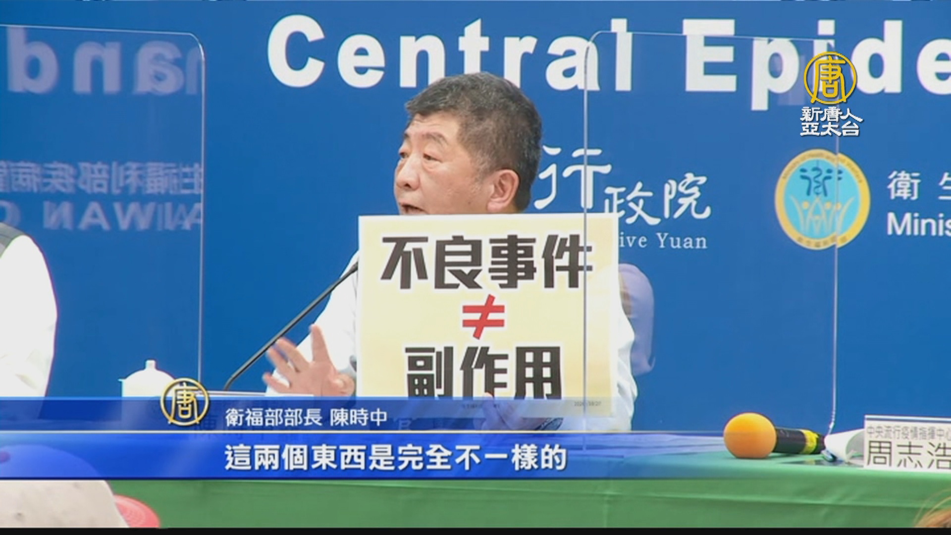 衛福部部長 陳時中:「第一個必須要澄清的,大家把不良事件當作是副作用,這兩個東西是完全不一樣的,到底是不是因為疫苗所引起的副作用,那這要由這樣的通報的案件裡面。經過我們的專家再來研判,它是否有關連性。(疫苗接種不良事件通報死亡)這些都是我們常見的一些,心血管的一些疾病,那基本上跟我們的疫苗,在專家認定裡面,關聯性非常的低。統計這樣來看的時候,並沒有任何證據顯示說,整體的疫苗有相關的問題。」