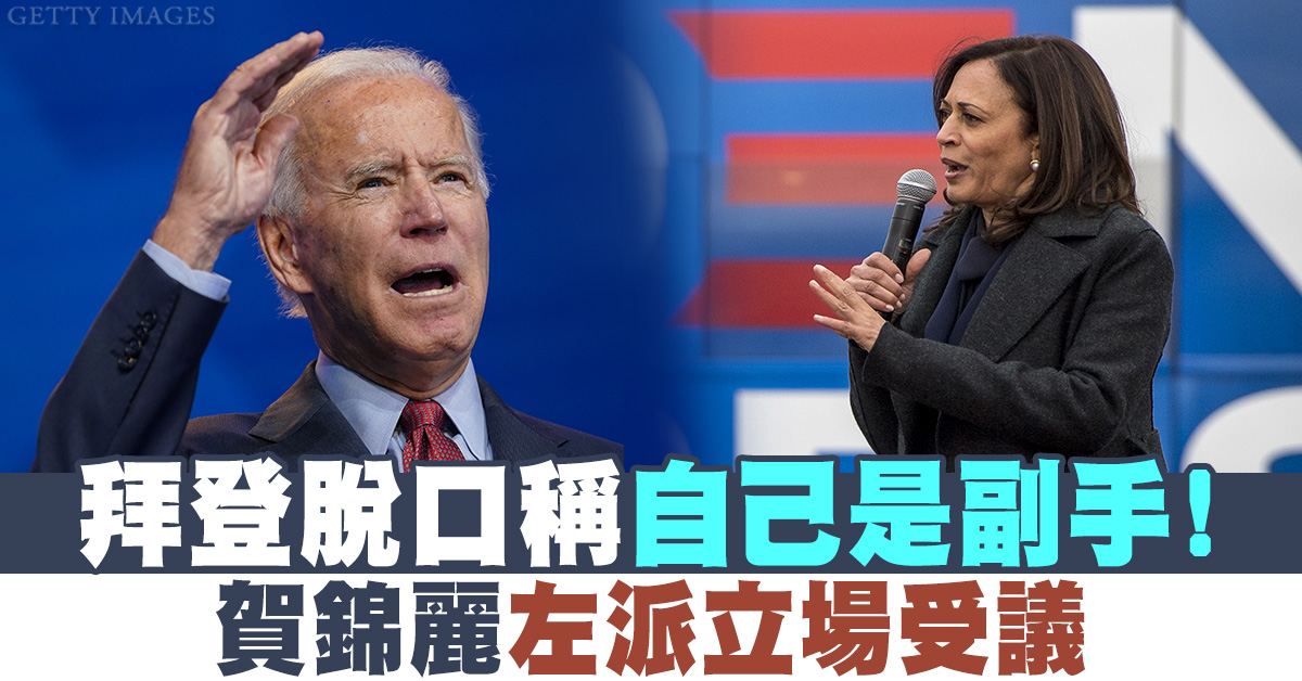 拜登脫口稱自己是副手!賀錦麗左派立場受議