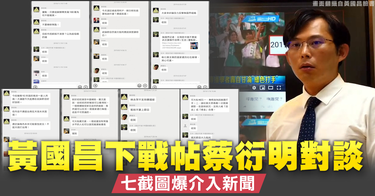黃國昌指出,七張截圖中,旺中媒體主管「唯唯諾諾」回覆;蔡還下令,暫時不找當時不支持韓國瑜的李永萍上中天的節目。