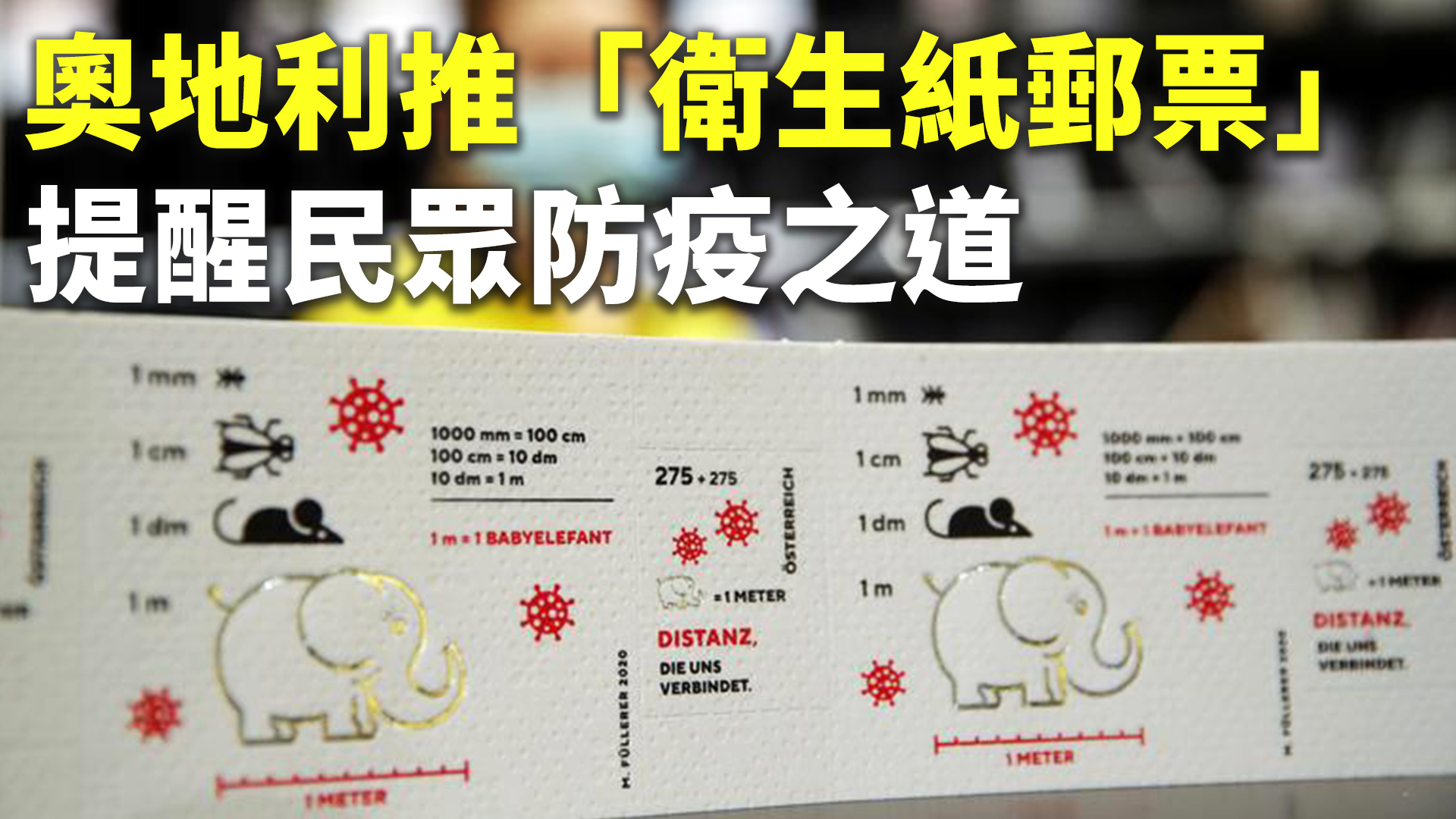 【新唐人亞太台 2020 年 10 月 30 日訊】中共肺炎疫情持續蔓延,全球已經有近4300萬例確診、超過114萬人死亡,歐美疫情仍處在失控狀態;對此,奧地利郵政總局近日將發行一款「衛生紙郵票」,上面印出各種動物的身長比例,提醒民眾保持社交距離。