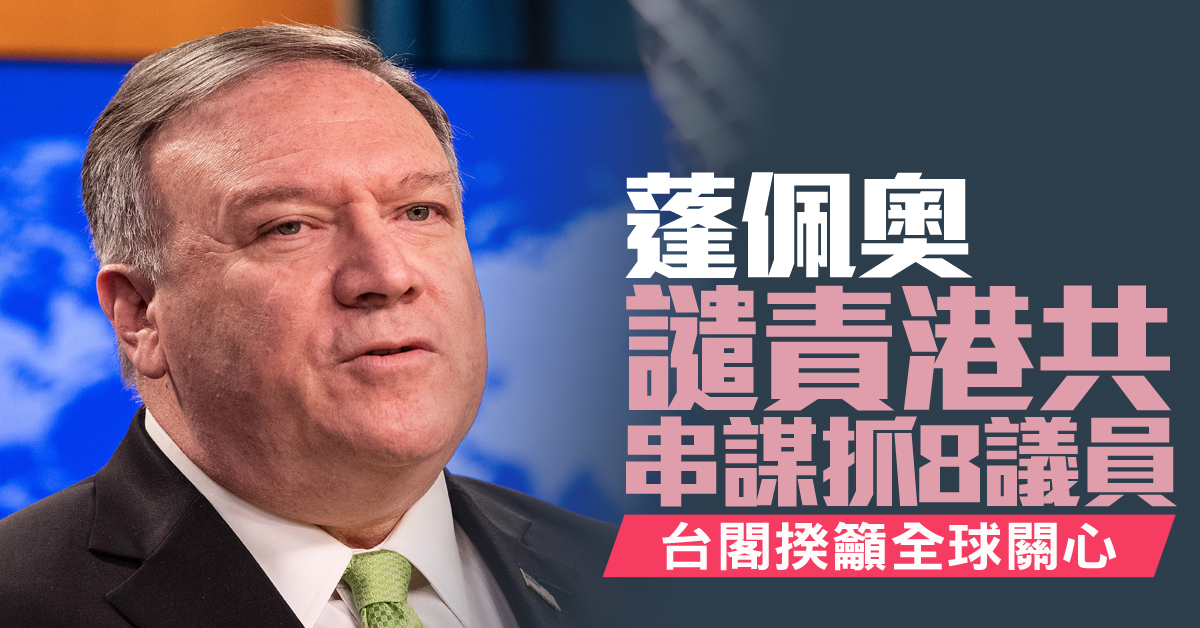 蓬佩奧譴責港共串謀抓8議員 台閣揆籲全球關心