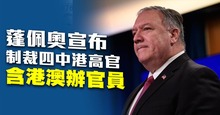 蓬佩奧宣布制裁四中港高官 含港澳辦官員