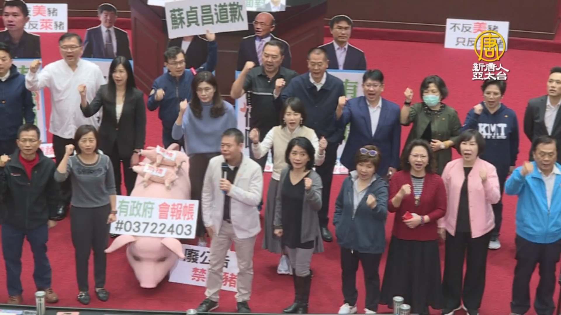 【新唐人亞太台 2020 年 11 月 13 日訊】行政院長蘇貞昌,今天(13日)上午到立法院進行施政報告,遭到國民黨第9度杯葛!藍營再度搬出豬道具佔領議場,這次還多了兩隻新夥伴,要求蘇貞昌道歉。這也讓蘇貞昌再度開酸,抬著一隻道具豬進進出出8次了,都豬八戒了,不知道還要豬幾戒。