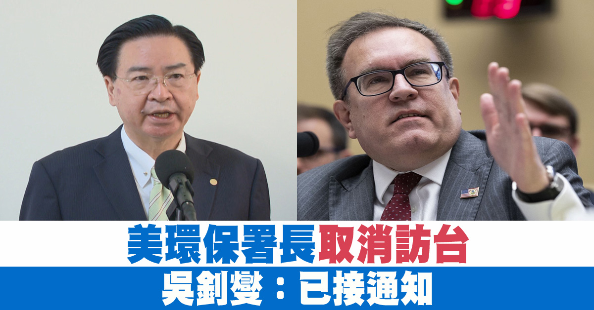 美國環保署長惠勒(Andrew Wheeler)原定要在12月訪台,就海洋和環保議題進行交流,但美國媒體報導,惠勒因故取消了訪台行程,外交部長吳釗燮也在稍早證實。