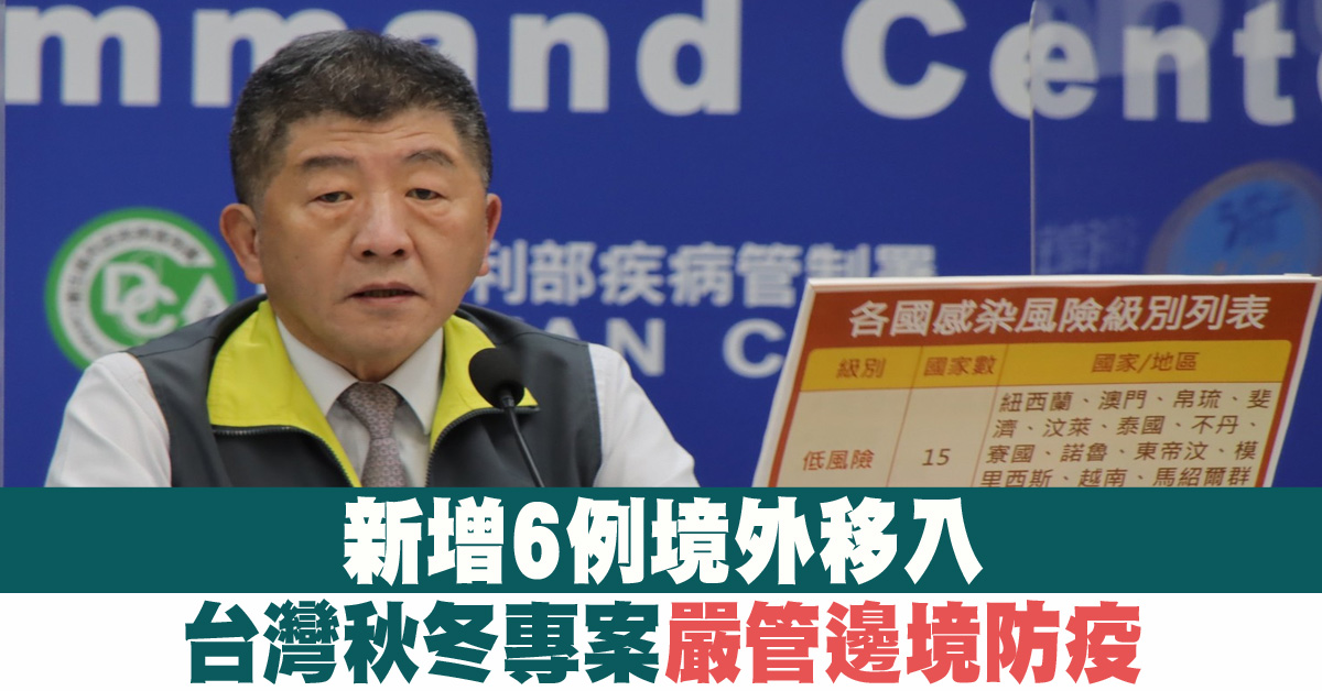 新增6例境外移入 台灣秋冬專案嚴管邊境防疫