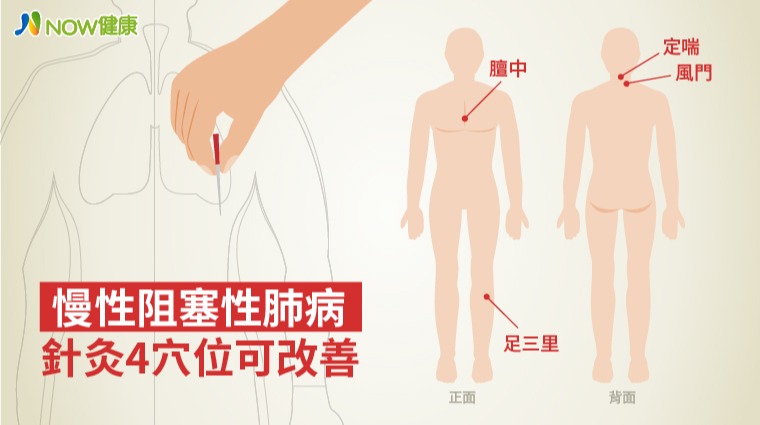從刺激足三里、風門、膻中及定喘這4個穴位,可作為治療慢性阻塞性肺病患者的核心穴組。(圖/NOW健康製作)