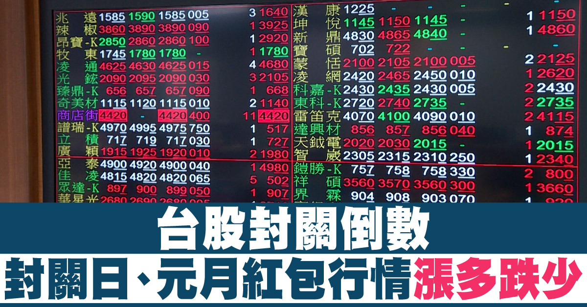 台股封關倒數 封關日、元月紅包行情 漲多跌少