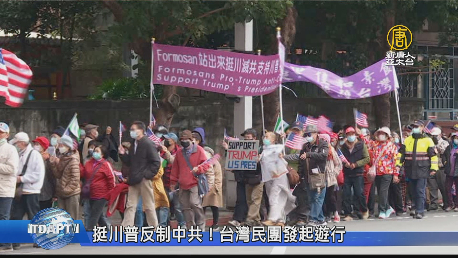 【新唐人亞太台 2021 年 01 月 02 日訊】台灣民間團體今天(2日)在凱道發起「挺川普、護台灣」遊行,大約三百多人從凱道出發,繞行台北街頭,意在表達力挺川普對抗中共,並且在總統任內推行友台的政策。對於美國大選弊端頻傳,更有中共背後干預黑幕重重,民間團體認為,1月6號美國參、眾議員對選舉人團投票結果發起挑戰,會有好的結果。