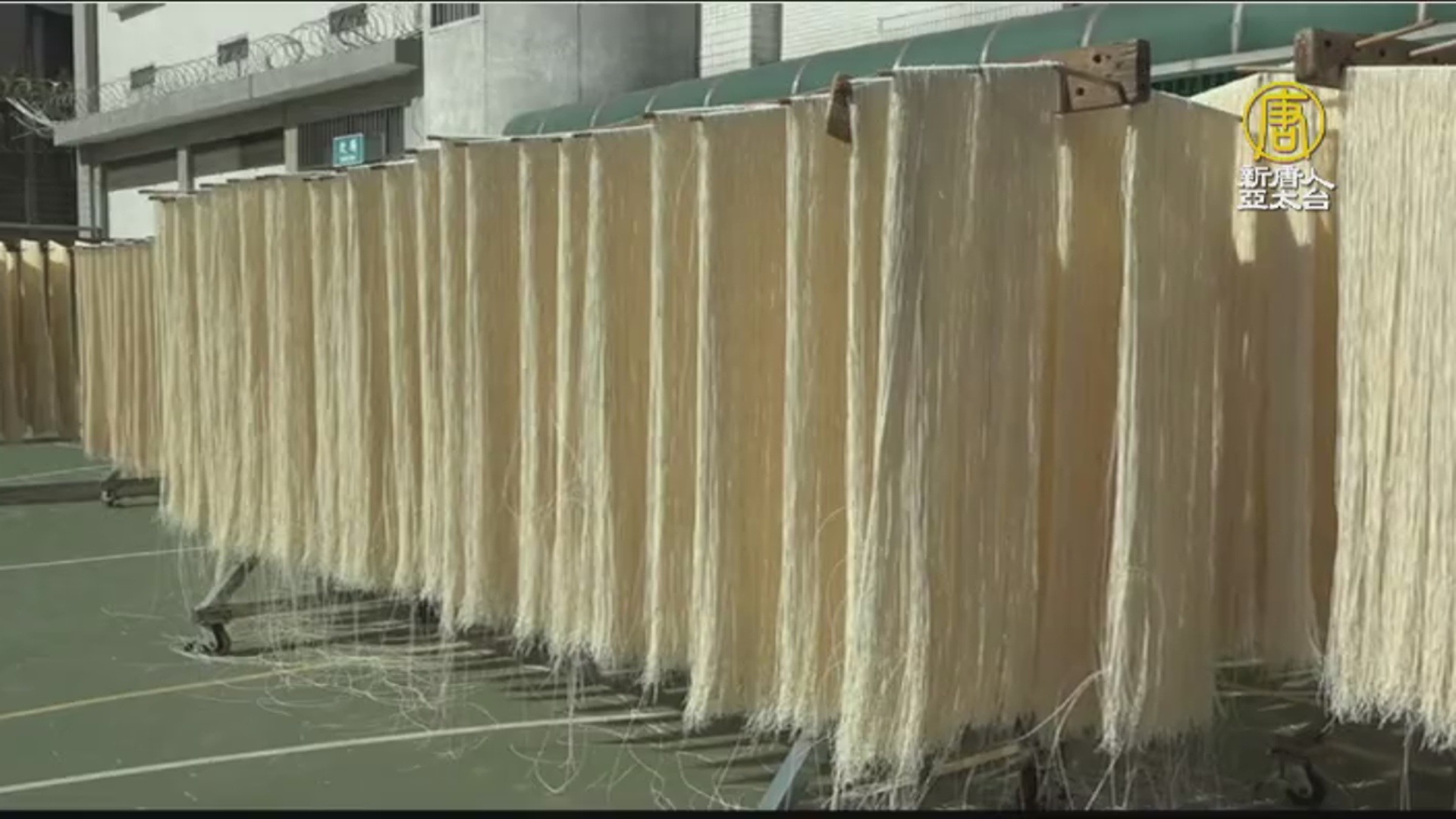 白色麵線在陽光下曝曬,有如細長髮絲在風中擺動,看了好療癒,不說不知道這些麵線,可全都出自於監獄受刑人之手,因為便宜又好吃,頗受消費者歡迎。