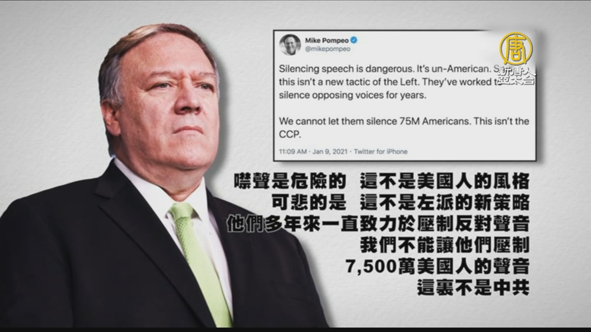 【新唐人亞太台 2021 年 01 月 11 日訊】大科技公司言論審查愈演愈烈,美國用戶紛紛轉向不做審查的社交平台。美國務卿蓬佩奧將這種言論審查,比做共產中國的作法。