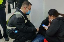 2021年1月19日,上海浦東新區世紀大道站2號線月台有女士暈倒在牆邊。(知情者提供)