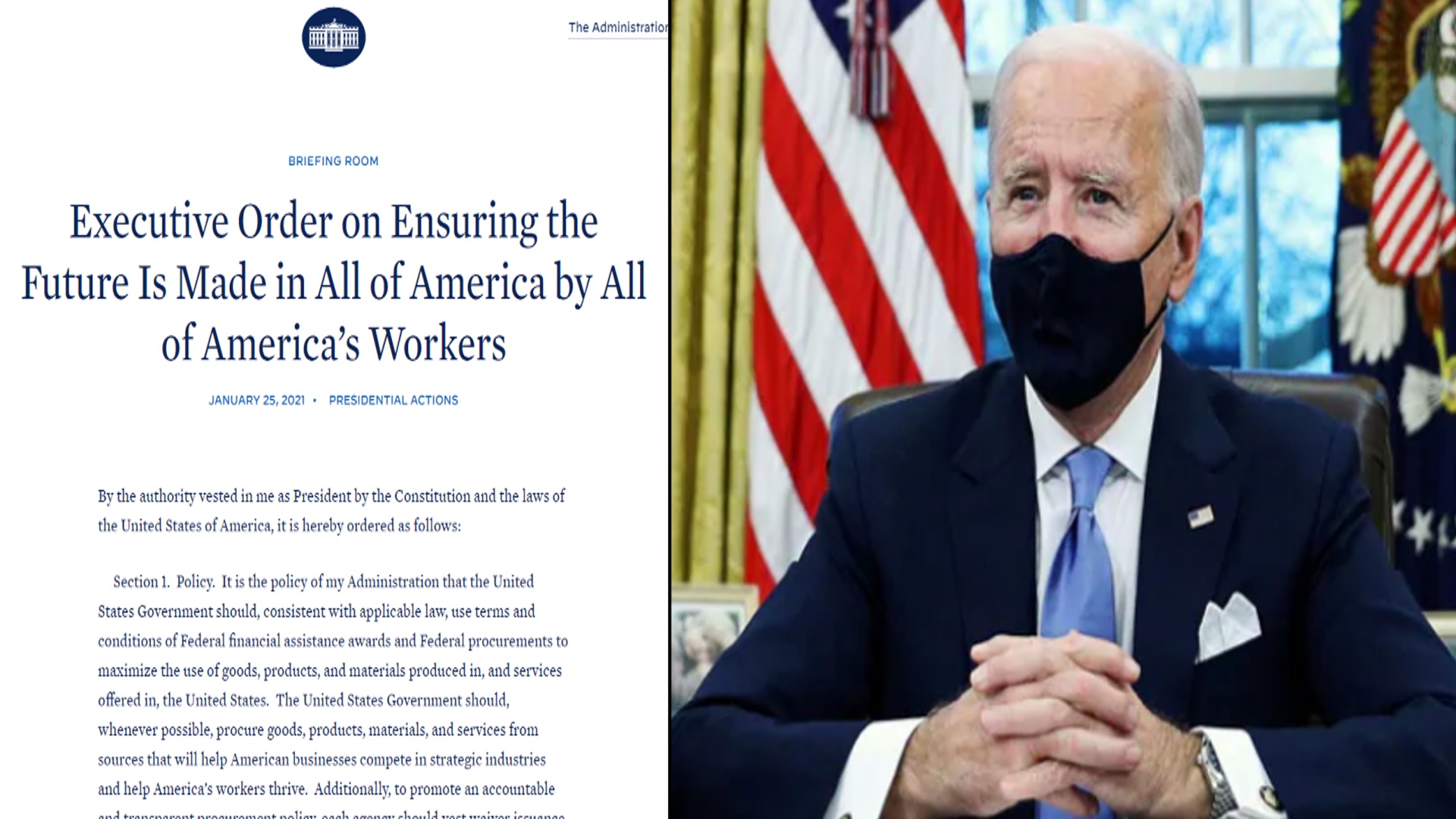 【新唐人亞太台 2021 年 01 月 26 日訊】早安新唐人,先來關心,美國白宮25日在網站發出聲明,指出總統拜登簽署行政命令,「加強購買美國貨」「確保美國的未來,是藉由美國工人的美國製造」。早在川普政府時期就提出了「買美國貨」的政策。川普在其任期發布了多個行政命令,以刺激聯邦政府購買更多美國商品,並利用關稅來解決不公平競爭。週一,美股標普、那指創歷史新高,蘋果、特斯拉也締新高。不過,美國眾議員蘭斯·古登發文寫道,如果拜登真的想促進美國製造,拜登就不該試圖讓美國石油和天然氣破產。蘭斯·古登指的應該是,拜登阻止美國與加拿大的輸油管計畫,以及,拜登下令聯邦土地及海域將暫緩出租給新的石油與天然氣探鑽案。