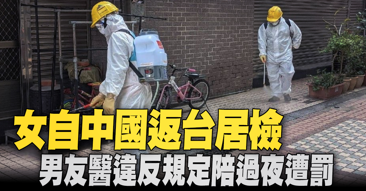 【新唐人亞太台 2021 年 02 月 04 日訊】新聞開始先來關心,台中一名女子,上個月(26日)從中國返台,還在居家檢疫期間,竟連續兩天找男友到住所陪過夜,嚴重違反規定,更爆出男友的身分竟是醫師,市府對這名女子開罰20萬元外,也要求他的醫師男友暫停上班,並自主健康管理,目前一採陰。